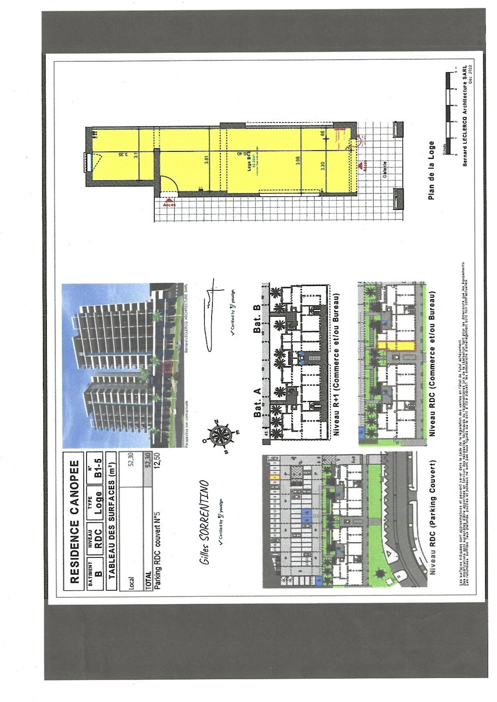 un local commercial dénommé B1-5 de 52,30 m2, en rez-de-chaussée, d’un immeuble neuf ("bâtiment B » ; partiellement achevé, achèvement complet prévu avant le 31/12/2025 et livraison au cours du 1er trimestre 2026) sis à Fort de France Zac l’Etang Z’Abricot route de la Pointe des Grives dans la "Résidence Canopée", plus une place de parking intérieure (n° 5) de 12,50 m2 ("bâtiment Parking ») et ce, pour la somme de € 232 000,00 (honoraires agence inclus à la charge du vendeur).