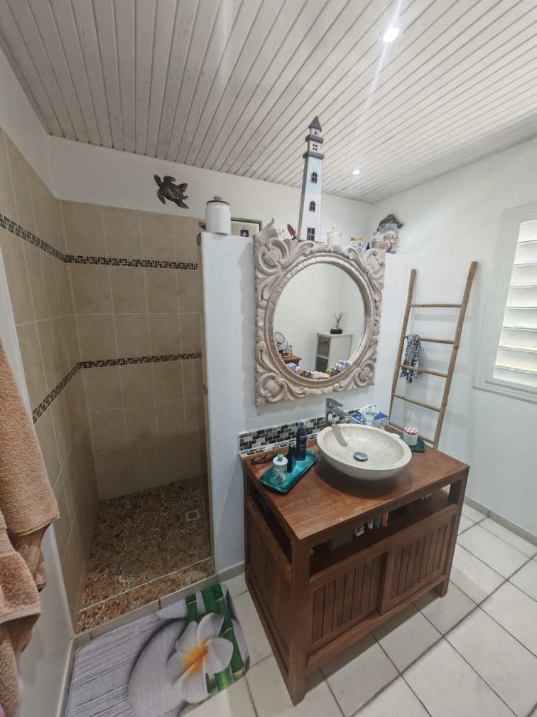 Placement immobilier de qualité avec cette maison dotée de 4 chambres et d'une charmante terrasse à vivre bien exposée sur la commune des Trois-Îlets à l'Anse-à-l'Ane. La construction date de 2009. Pour visiter cette maison, n'hésitez pas à contacter votre agence 2R IMMOBILIER 0696 39 36 09. Si vous cherchez un bien où emménager en famille, venez vite voir cette propriété. Dans 125m², l'espace intérieur comporte un coin salon de 40m², 4 chambres et un espace cuisine. Un point très pratique pour une famille nombreuse, l'ensemble des 2 salles de bain et 3 douches séparées évitent bien des conflits avant d'amener les enfants à l'école. Pour manger à l'air libre, l'habitation vous propose un jardin et une terrasse d'une surface de 16m² plus un carbet de 12 m2 environ. Le terrain de 711m² est relativement grand, c'est un véritable espace de jeu pour les enfants. Le logement vous fait profiter d'une aire de parking qui vous évitent de tourner en rond pour trouver une place. Pour ce qui est du prix de vente, il est de 545 000 €.